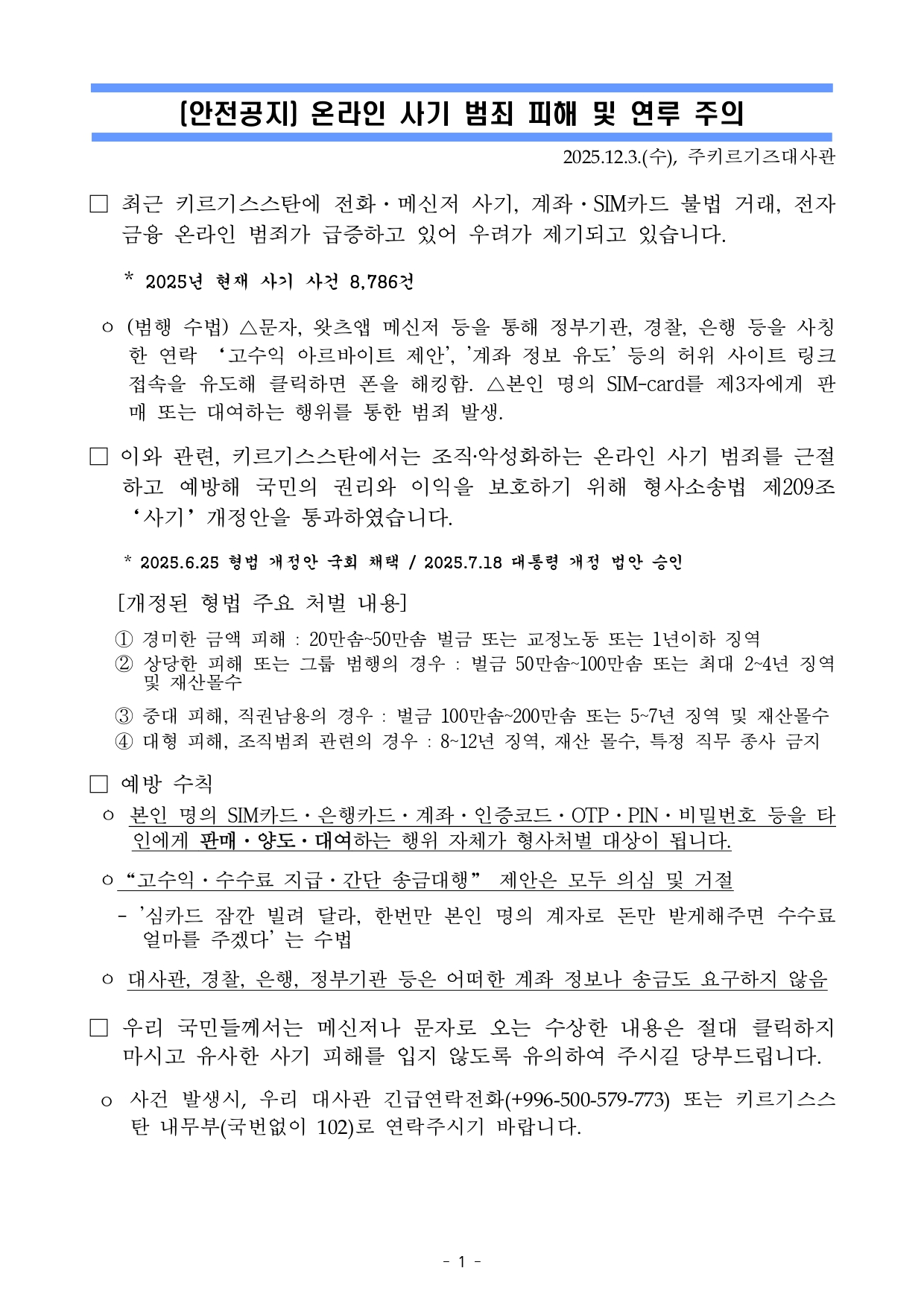 (안전공지) 온라인 사기 범죄 피해 및 연루 주의(형법 개정)