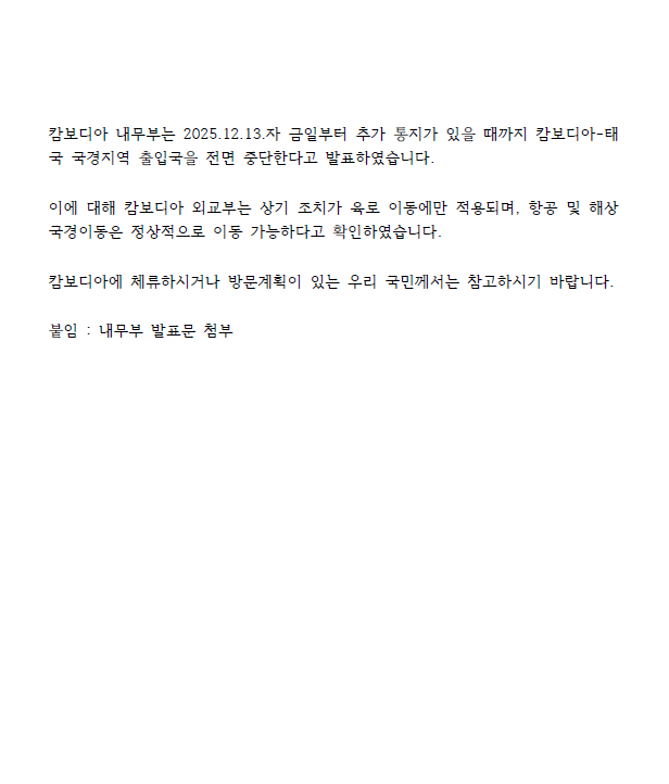 251213 캄태 분쟁상황 안전공지(항로