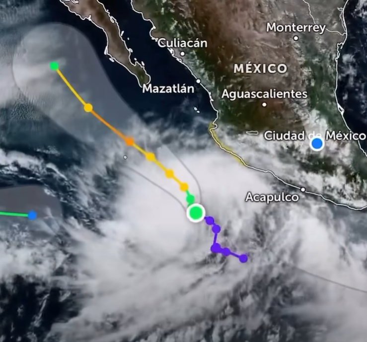 ●위치: 2025년 10월 7일 09:00(현지시간) 기준, 북위 19.8도 / 서경 110.1도, 로스카보스(Los Cabos)에서 약 465km 서쪽 해상