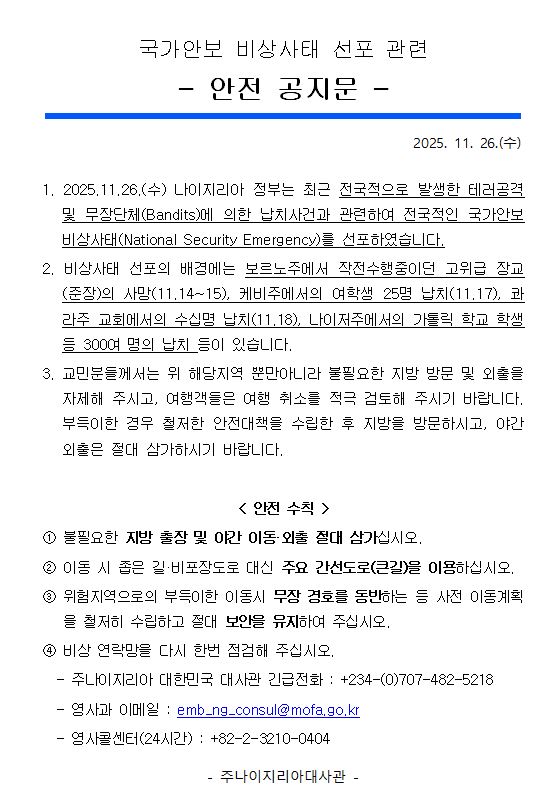(나이지리아)국가안보 비상사태 선포