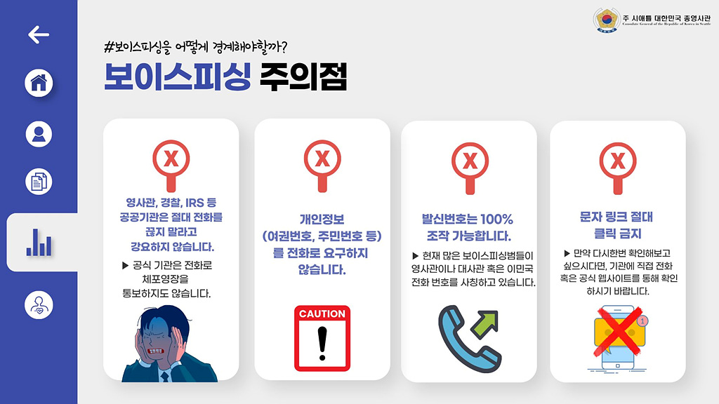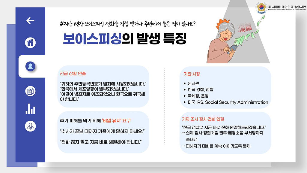 (최근 시애틀총영사관 사칭 보이스 피싱 사례 특징)
