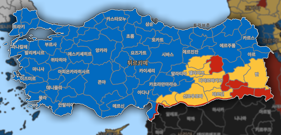 - (3단계 → 2단계) 튀르키예(킬리스, 가지안텝, 샨르우르파, 마르딘, 엘라즈, 툰젤리, 디야르바크르, 비틀리스, 반)