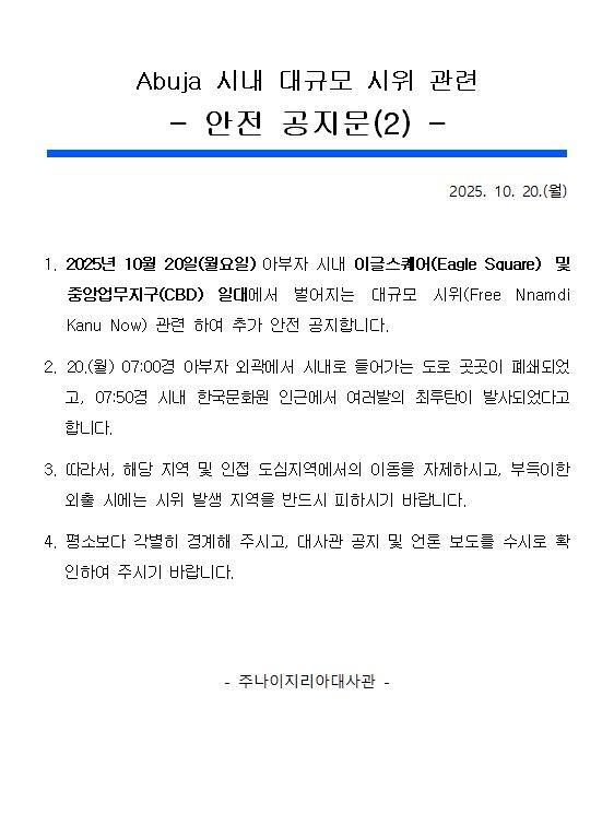 (안전공지) 251020 아부자 내 대규모 시위 예정 관련 안전 유의 당부 (2)