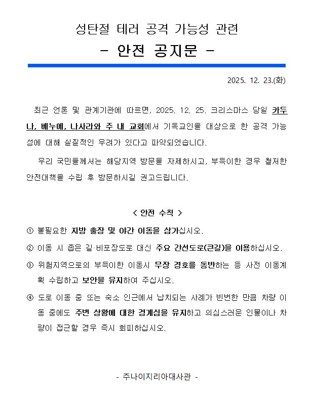 (안전공지) 성탄절 테러 가능성 공지