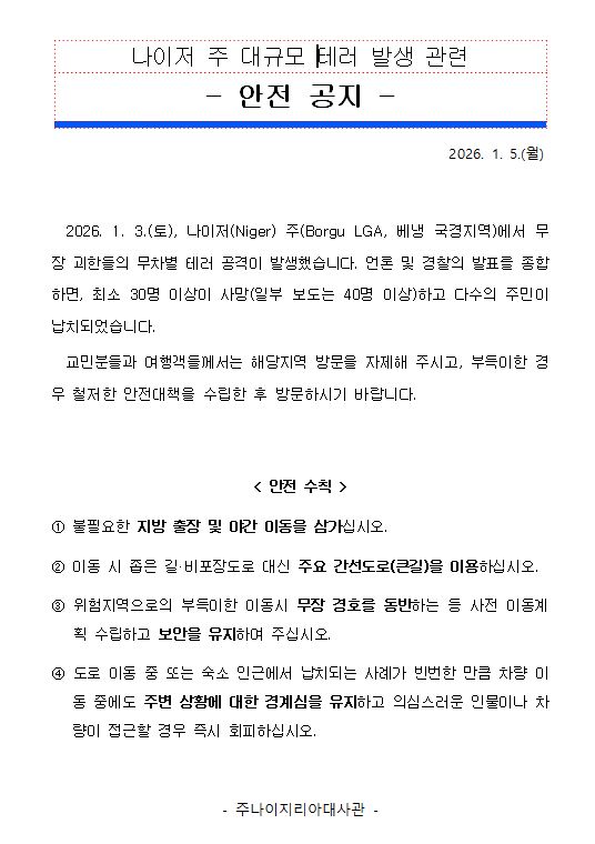 (안전공지) 나이저州 대규모 테러 발생 관련 안전유의