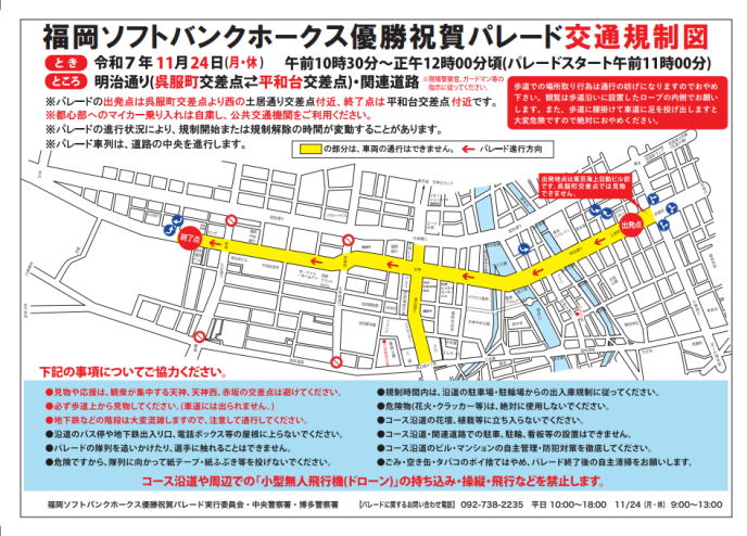 福岡県警察 福岡ソフトバンクホークス優勝祝賀パレードに伴う交通規制のお知らせ