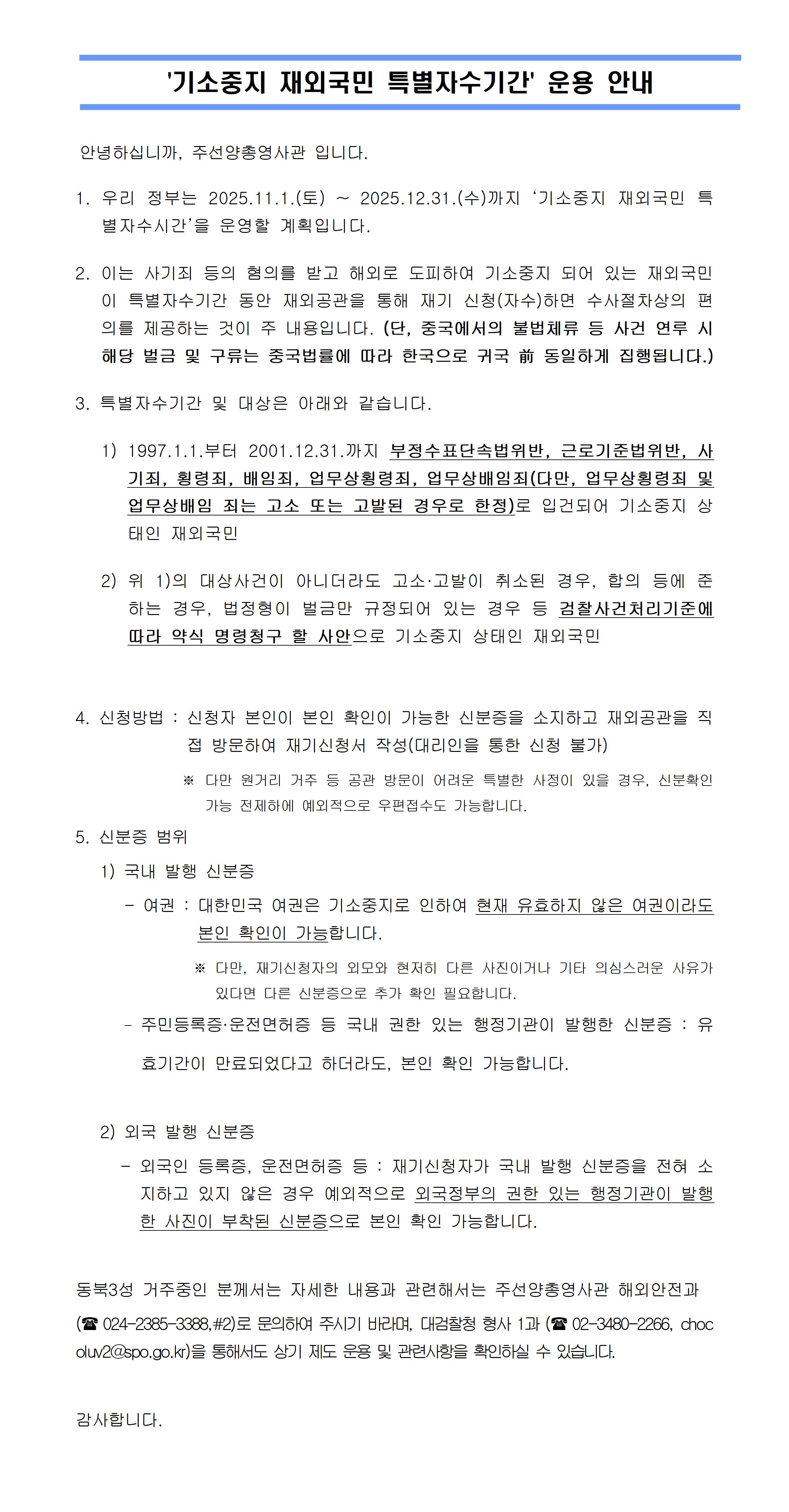 2025년 기소중지 재외국민 특별자수시간 운영안내