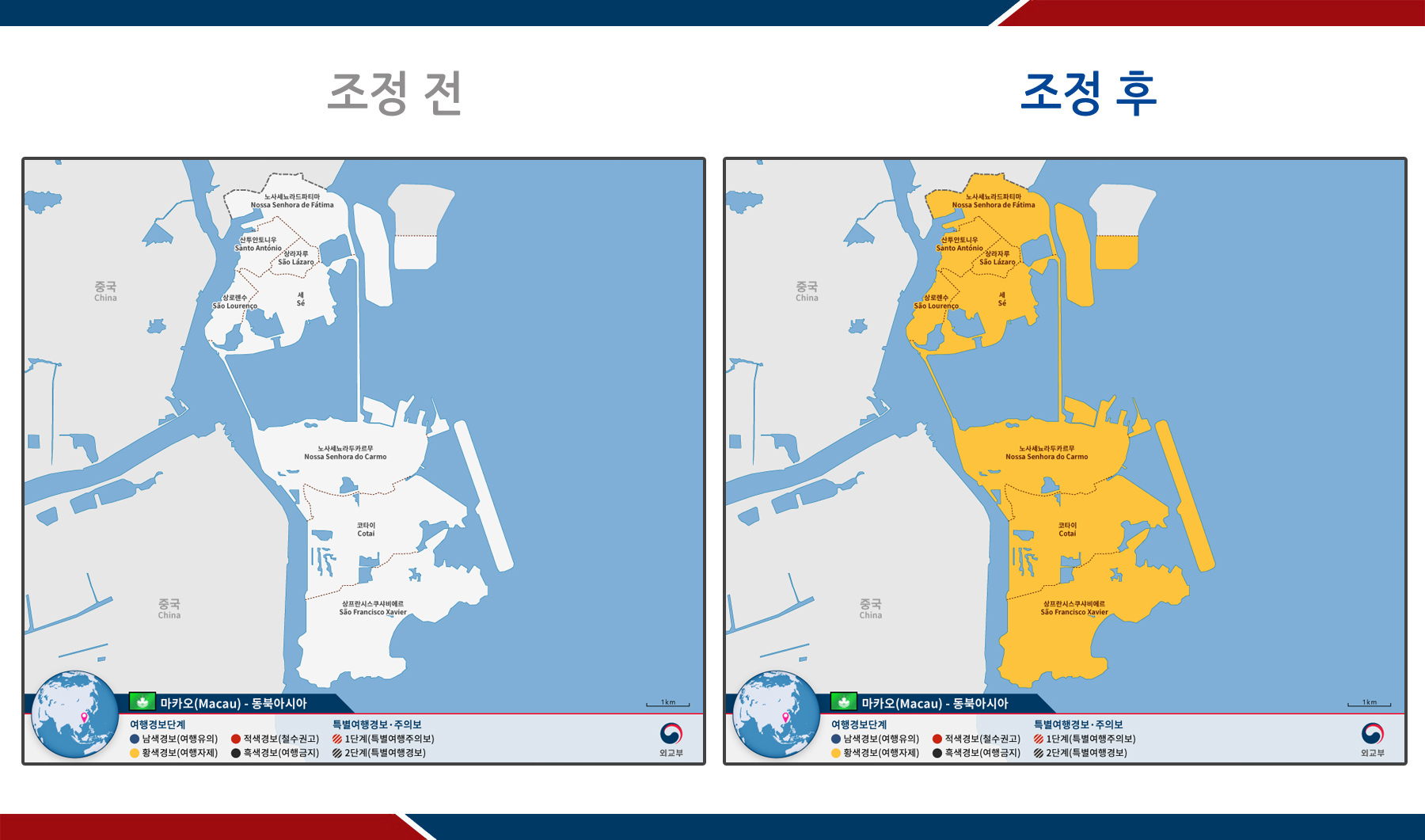 □ 외교부는 2020년 1월 28일부로 전 중국지역(홍콩·마카오 포함, 대만 제외)에 여행경보 2단계(여행자제)를 발령하였습니다.