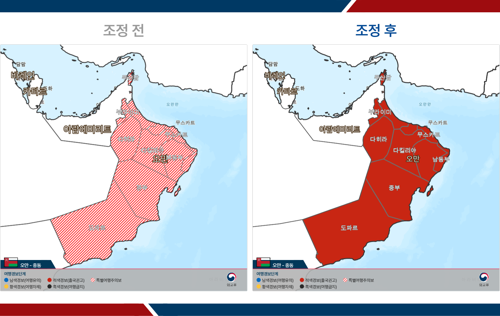 - 오만: 전역 특별여행주의보 → 전역 3단계(철수권고)